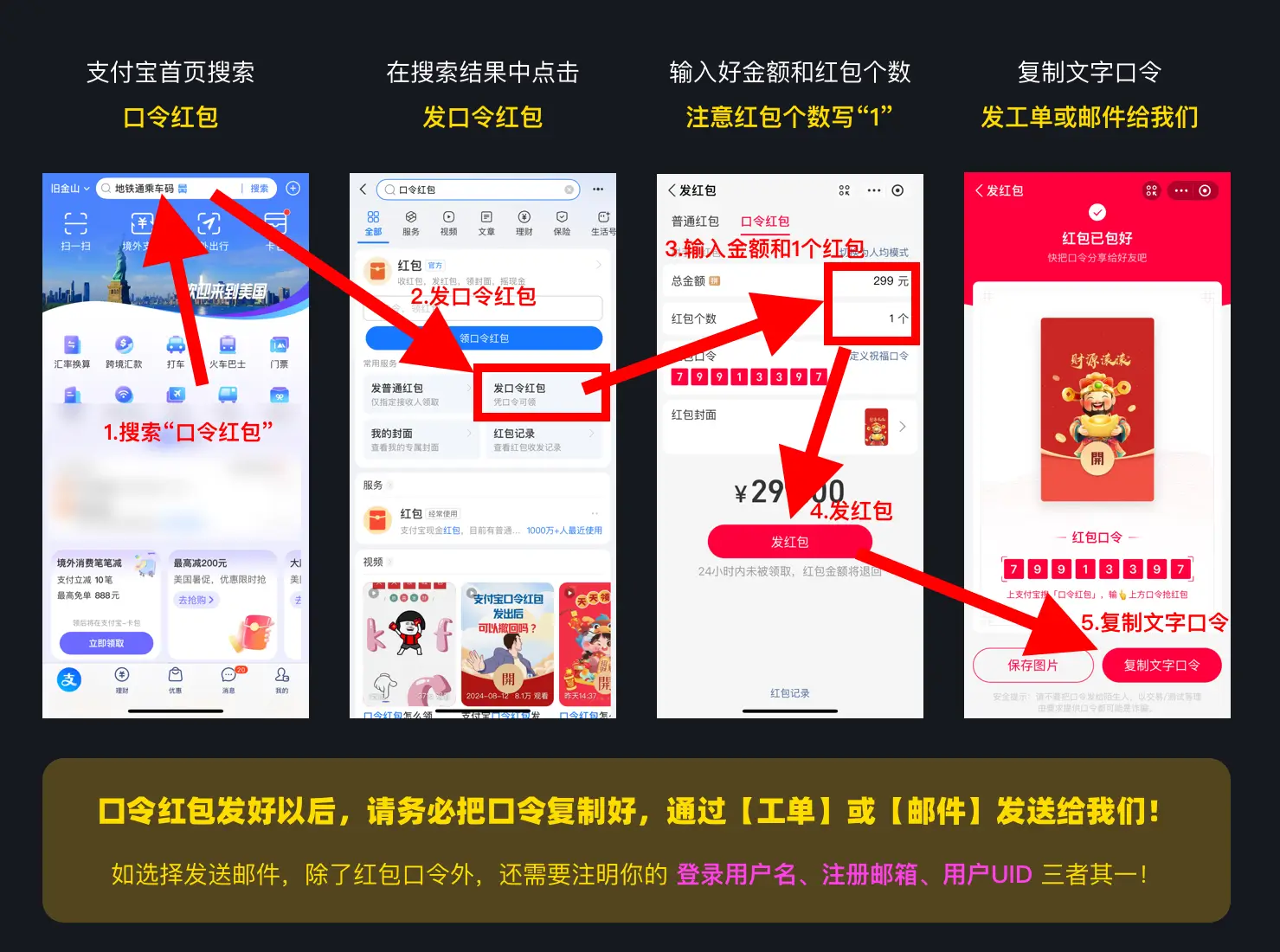 ⚠️特别注意:如通过【邮件】发送红包口令,请一定在发送口令时同时在邮件内写明你的用户名或注册邮箱或用户UID!!否则无法知道需要开通的账号,如因此无法开通会员,请自行负责!